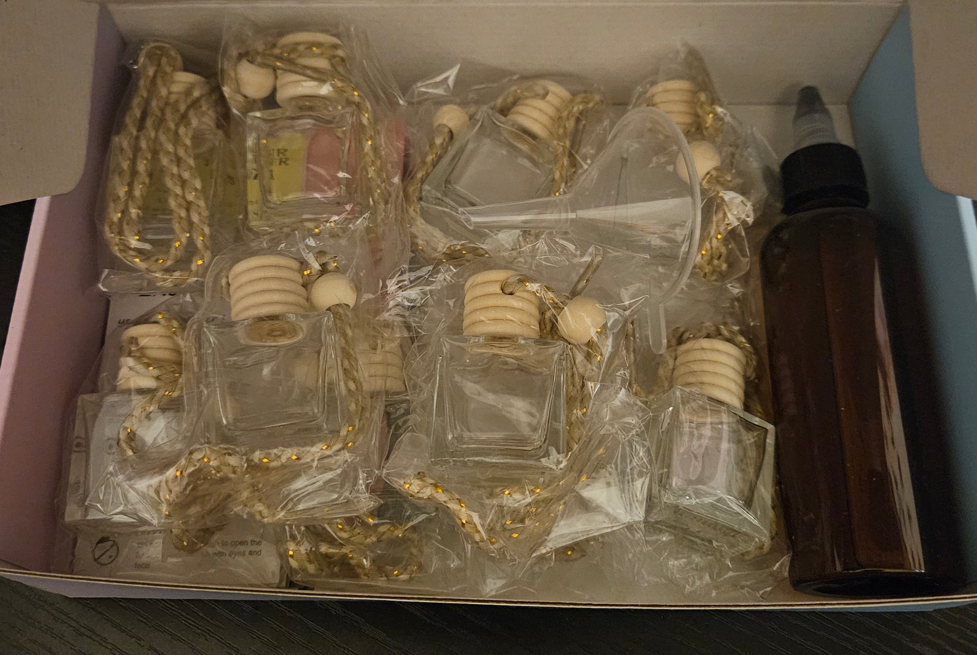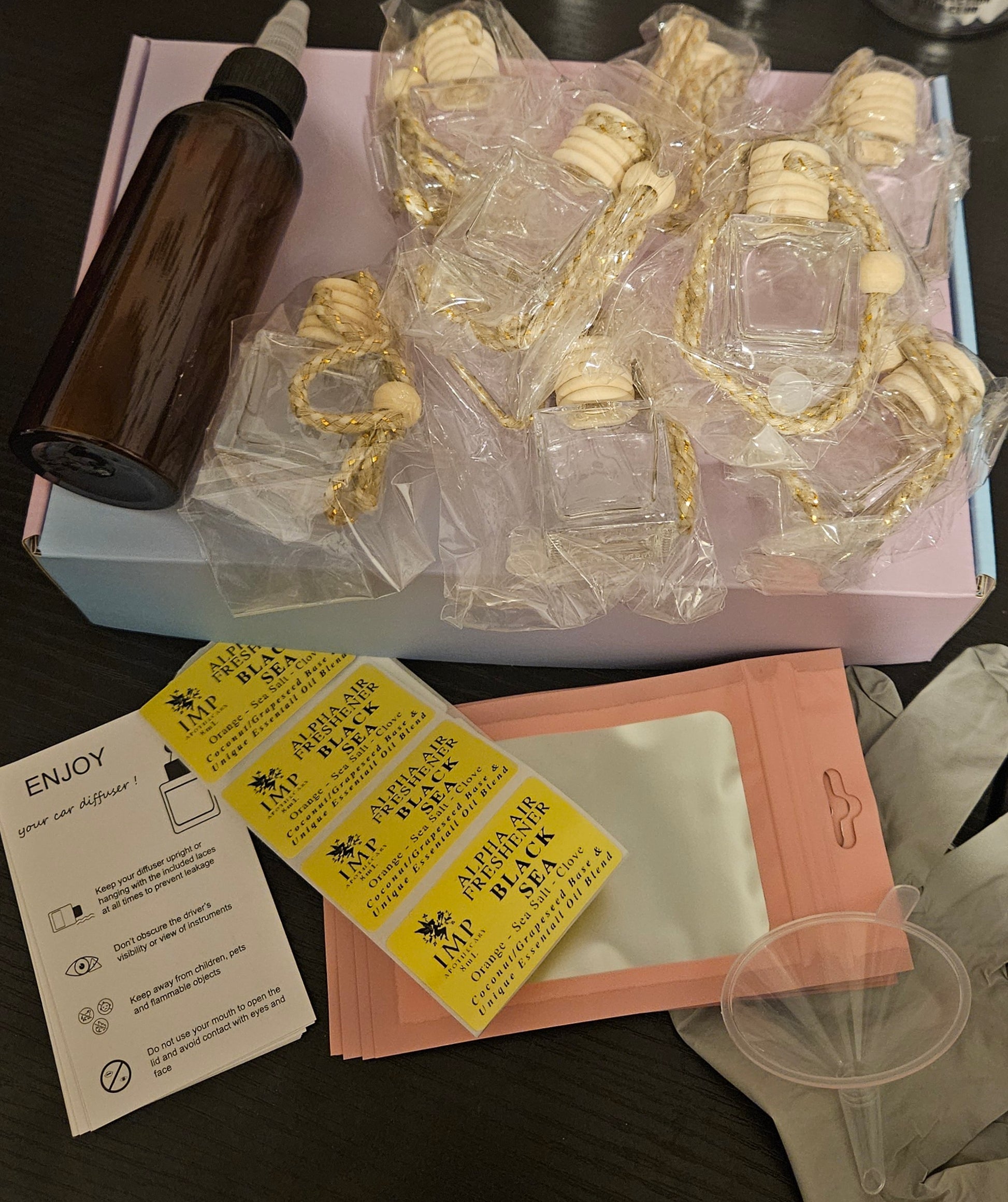 The create your own air freshener bundle includes 3.4oz of the selected Imp Apothecary Essential Oil Blend and everything you need to create 10 of your own Imp Apothecary's Alpha Air Freshener. Perfect to create gifts for the holiday, or add them to your shop earn some profit.